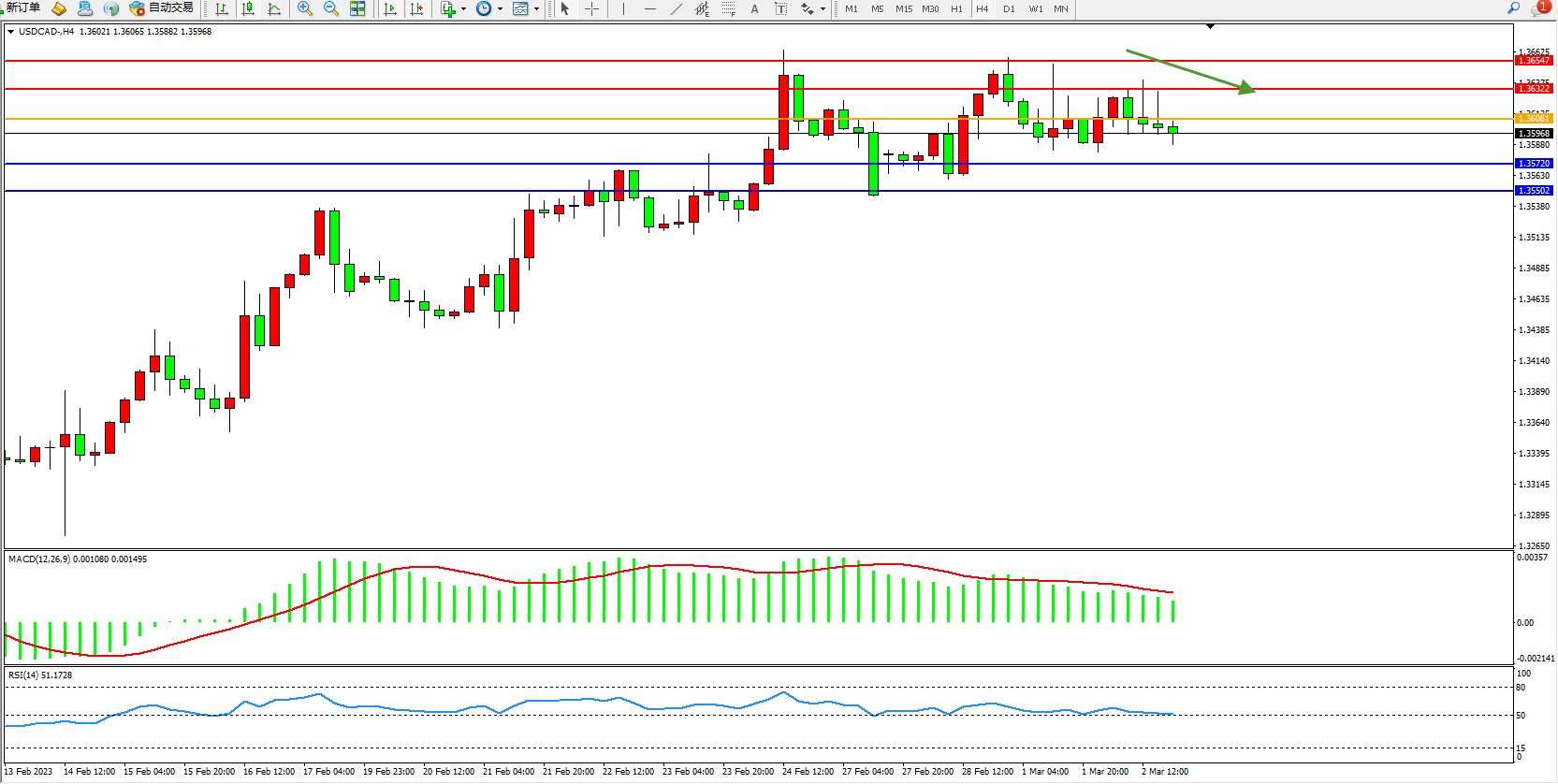 交易策略:1.36081下方看跌,目标1.35720、1.35502