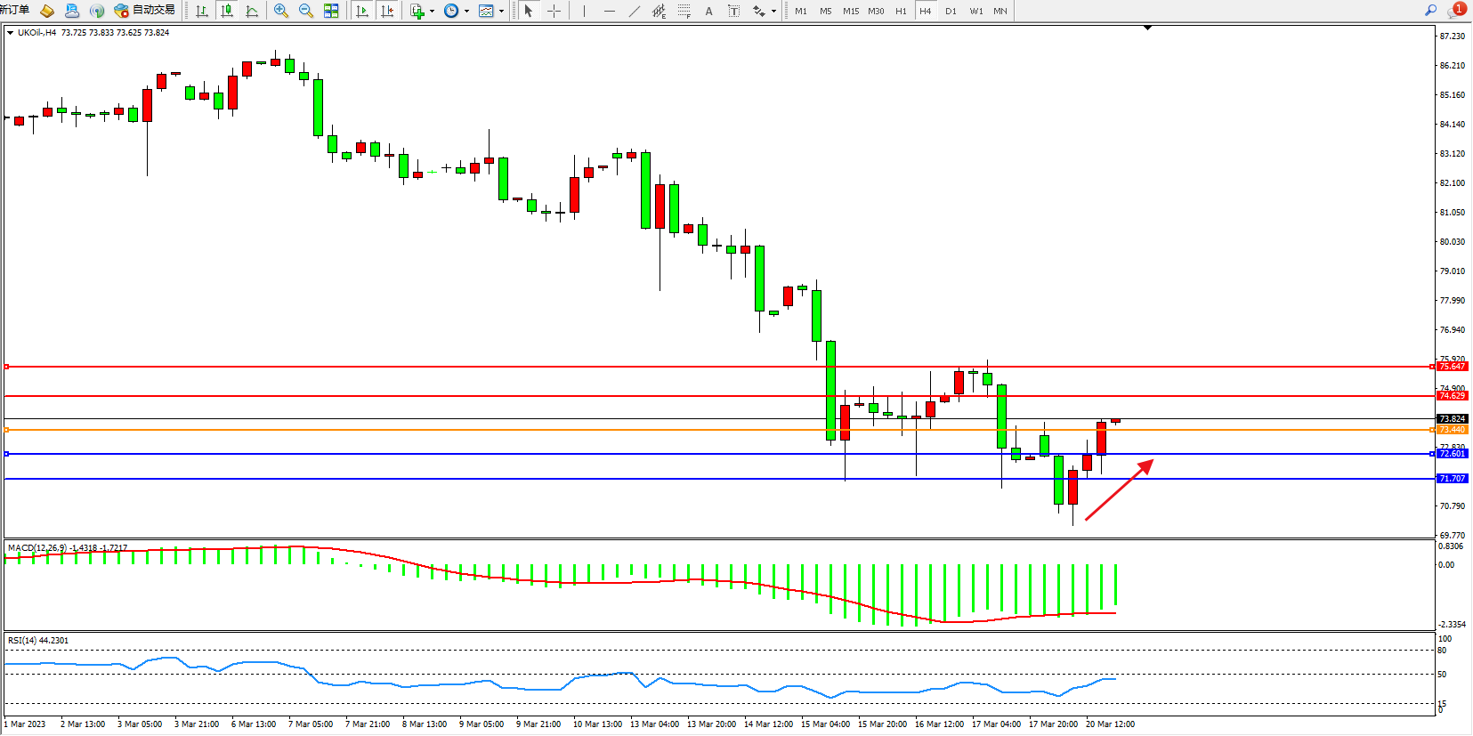 布油维持73.624附近震荡,欧美银行业危机的负面影响仍可能继续发酵,加剧了市场对欧美经济衰退担忧,国际油价受到重创。