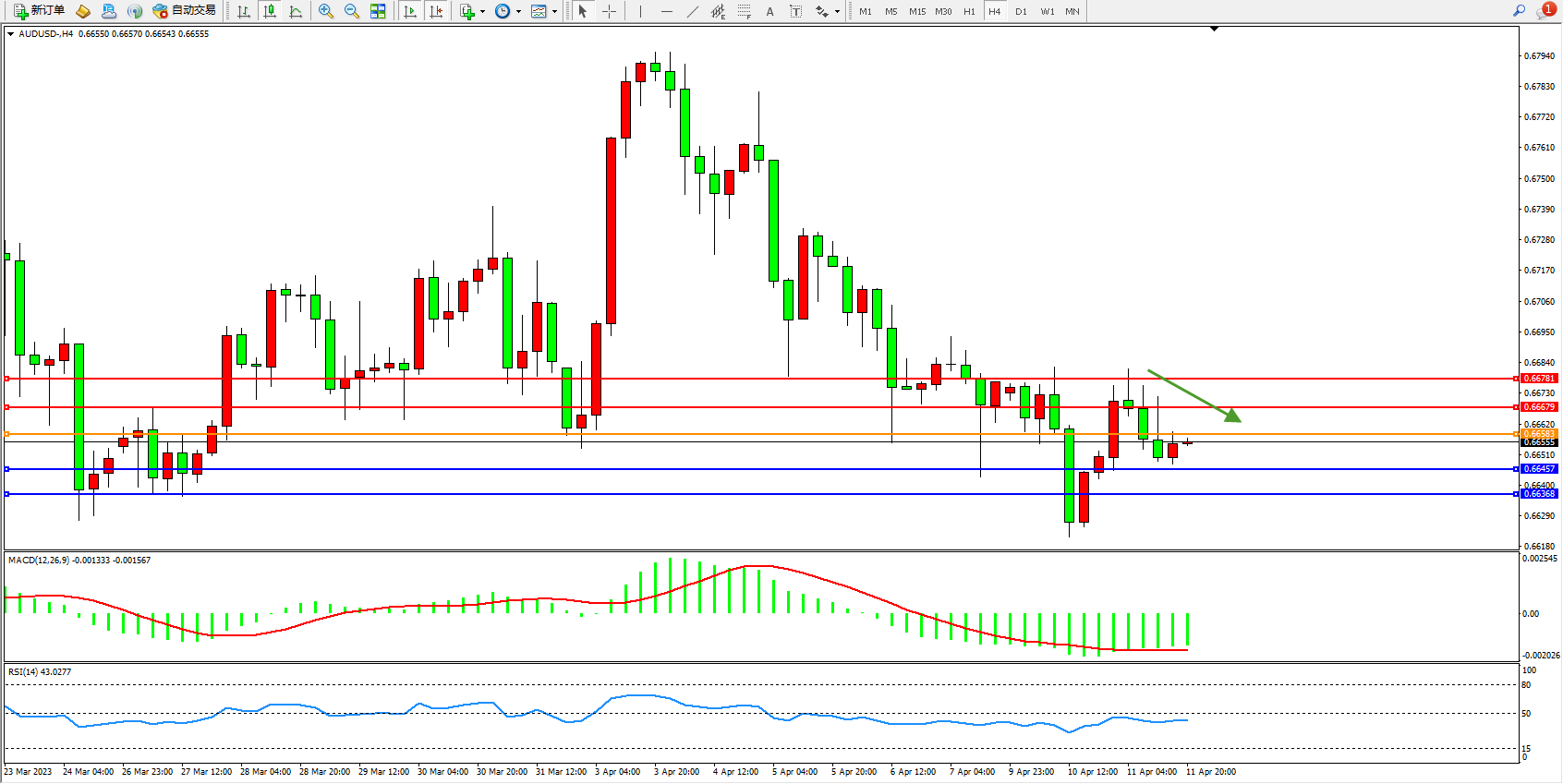 交易策略:0.66583下方看跌,目标0.66457 0.66368