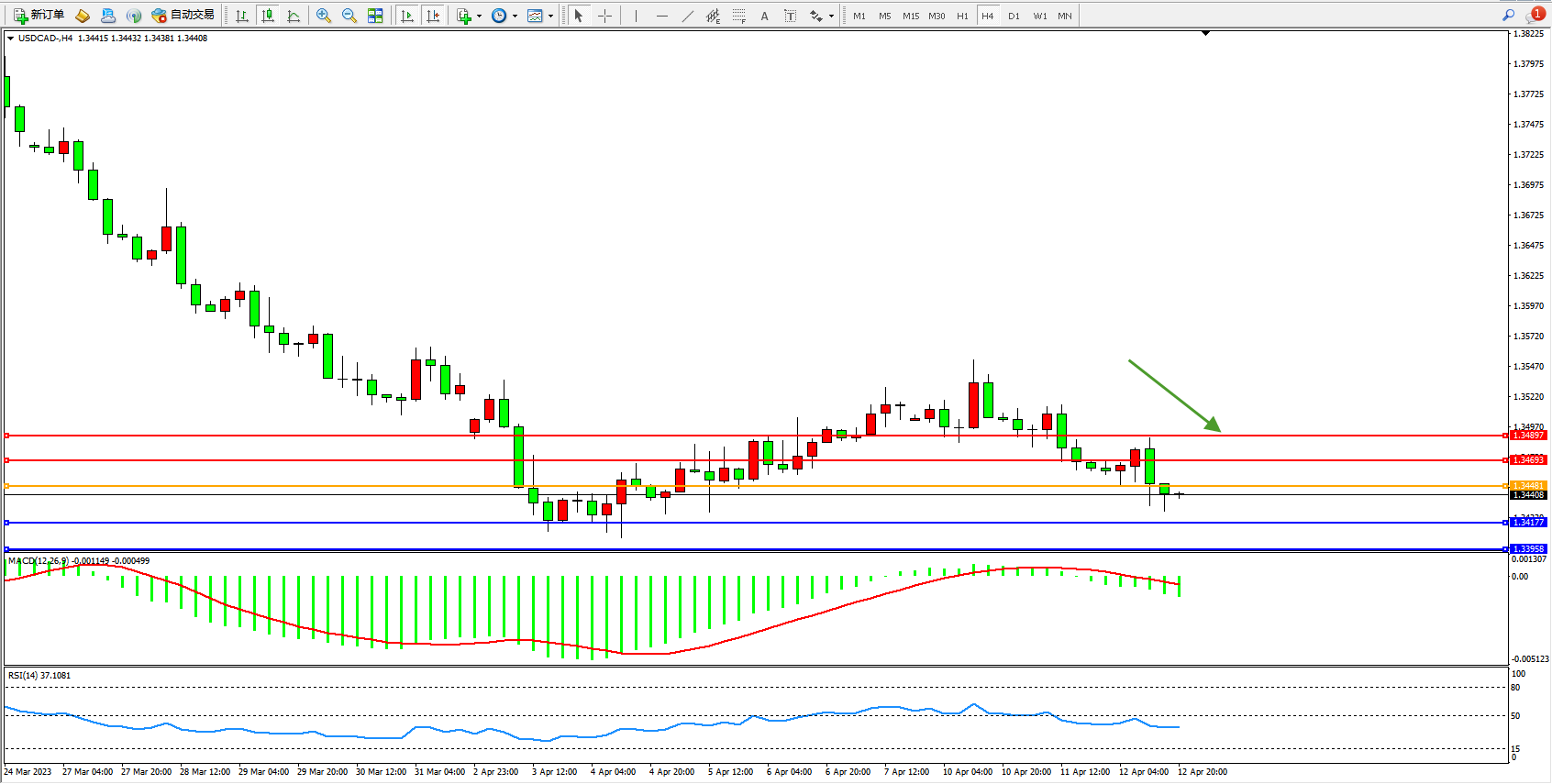 美元加元USDCAD——4小时K线图显示: