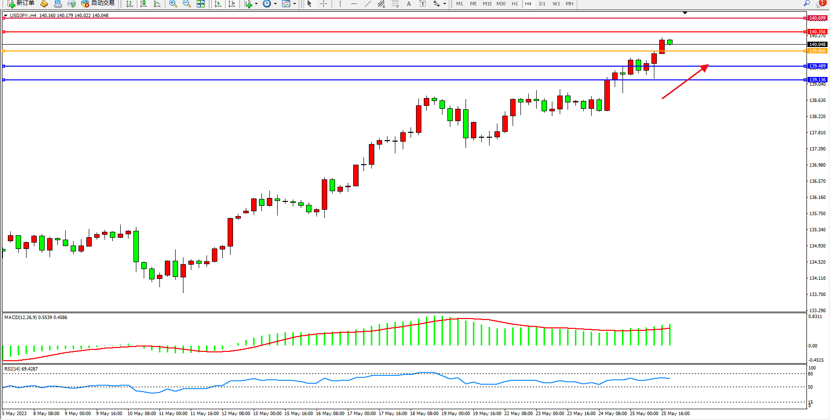 阻力位:140.356  140.699