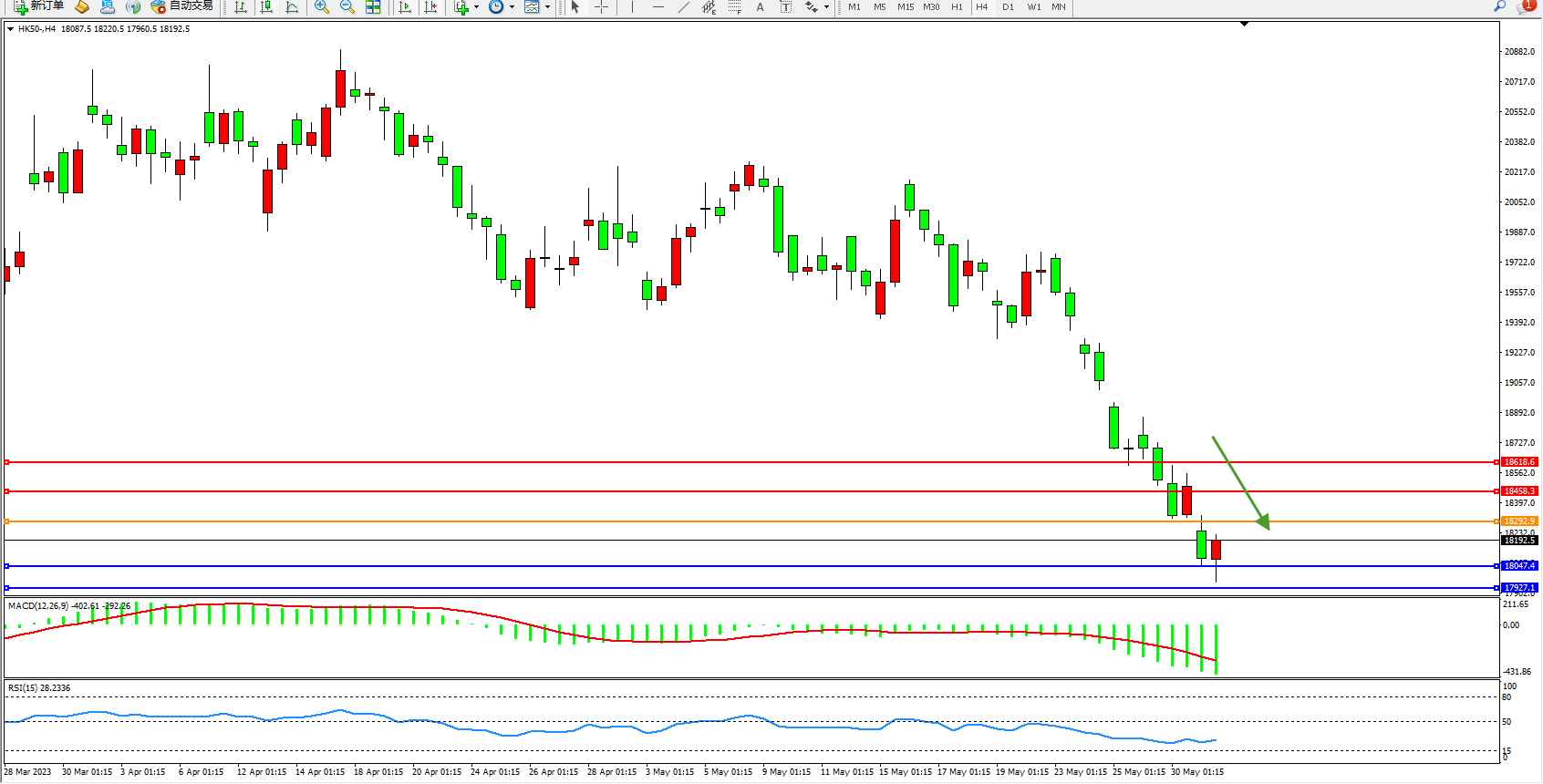 香港恒生指数5月31日(周三)收盘下跌361.51点,跌幅1.94%,报18234.27点;人民币汇率加速下跌,叠加中国官方制造业及非制造业PMI均低于预期。昨日止跌的港股再度下挫,恒生科技指数午后一度大跌3.7%尾盘有所回升,最终收跌2.04%,恒指、国指分别下跌1.94%和1.92%,三者皆陷入技术性熊市,均创去年11月以来新低。5月收官,恒指本月大跌8.35%为三大指数之首,恒生科技指数大跌7%。受昨日美股中概股下跌影响,微博、腾讯音乐、中通快递等中概股皆跌超6%,美团、腾讯、京东、百度等权重科技股皆走低;南下资金全日逆势净流入14.66亿港元,大市成交额放量至1709亿港元。
