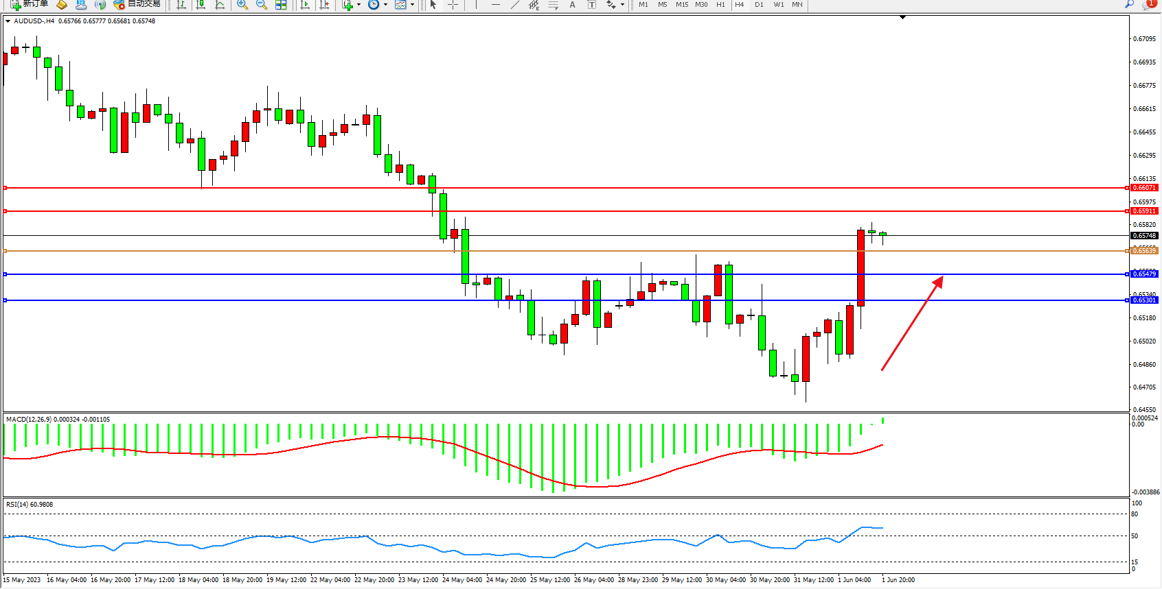 交易策略:0.65639上方看涨,目标0.65911  0.66071