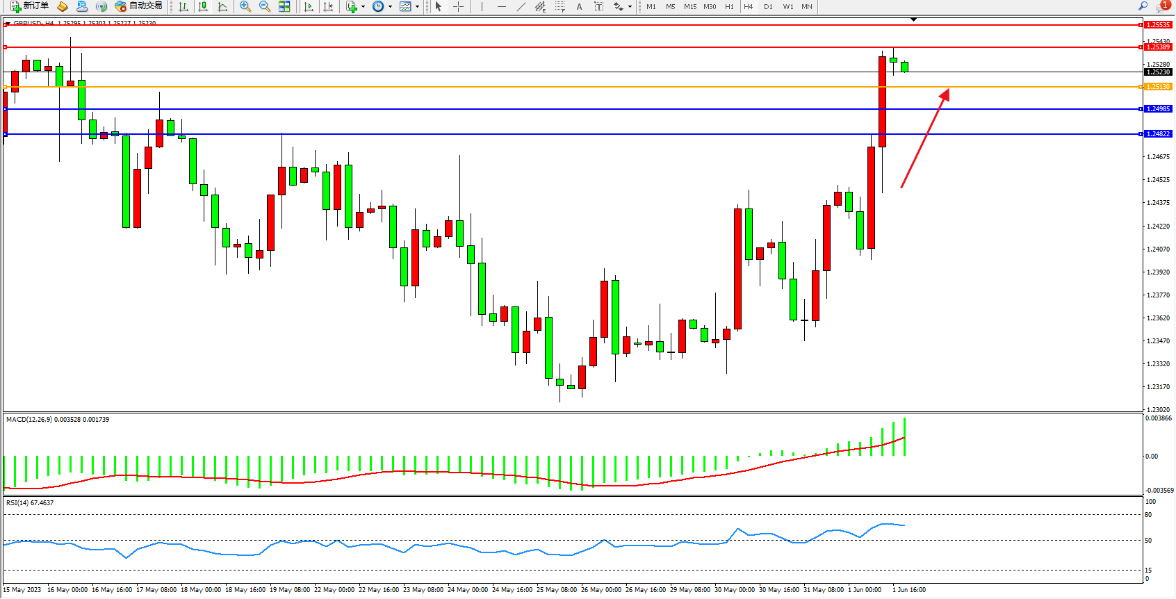 英镑美元GBPUSD ——4小时K线图显示: