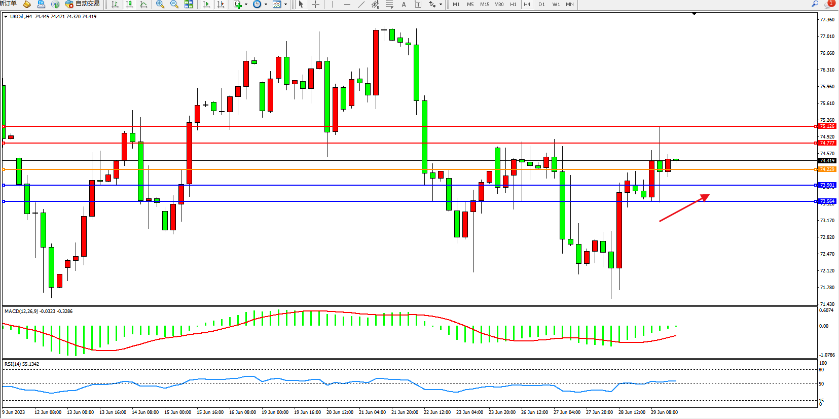 布油维持74.419附近震荡,石油生产商限制了供应,但燃料需求增长前景不明朗限制了油价涨幅。电动汽车的普及以及许多行业为应对气候变化而提高能源效率可能开始影响潜在的需求结构本身。