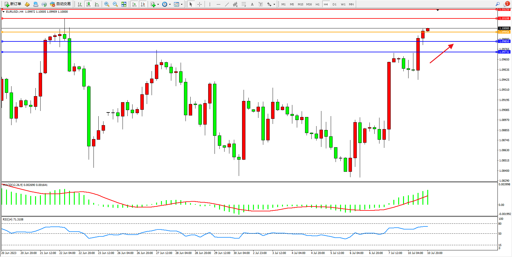 阻力位:1.10108  1.10210