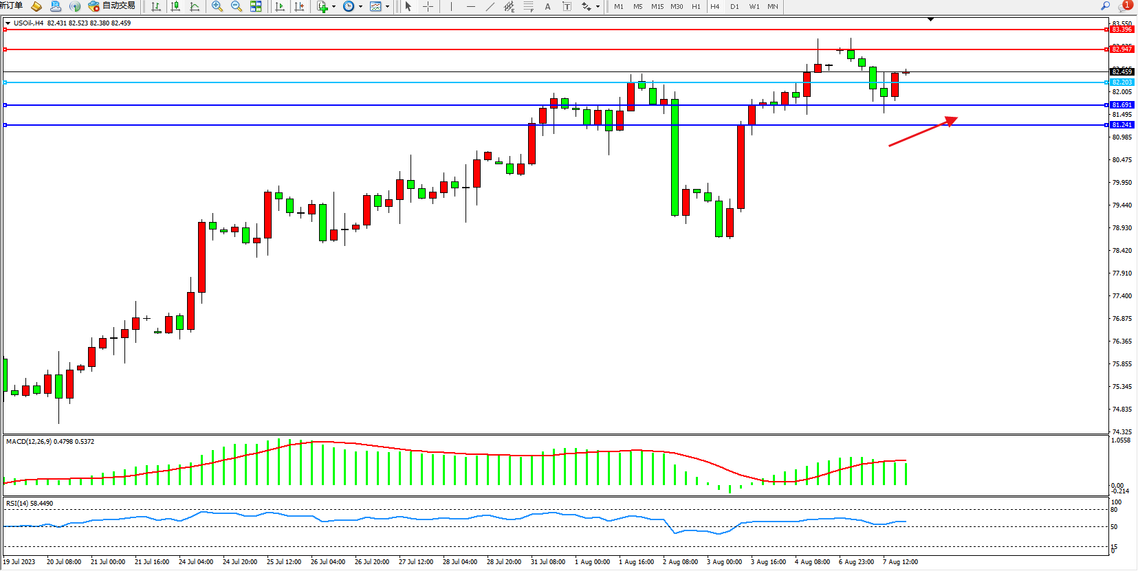 原油维持82.459附近震荡,OPEC+减产、中国刺激措施以及美国经济前景改善正在支撑原油价格,表示价格正在接近4月份高点的近期阻力位。