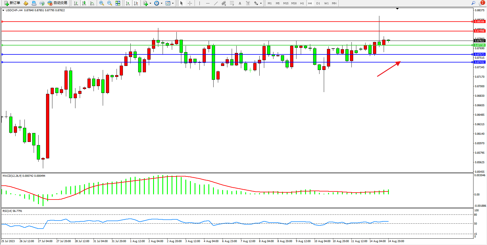 备选策略:0.87739下方看跌,目标0.87573 0.87432