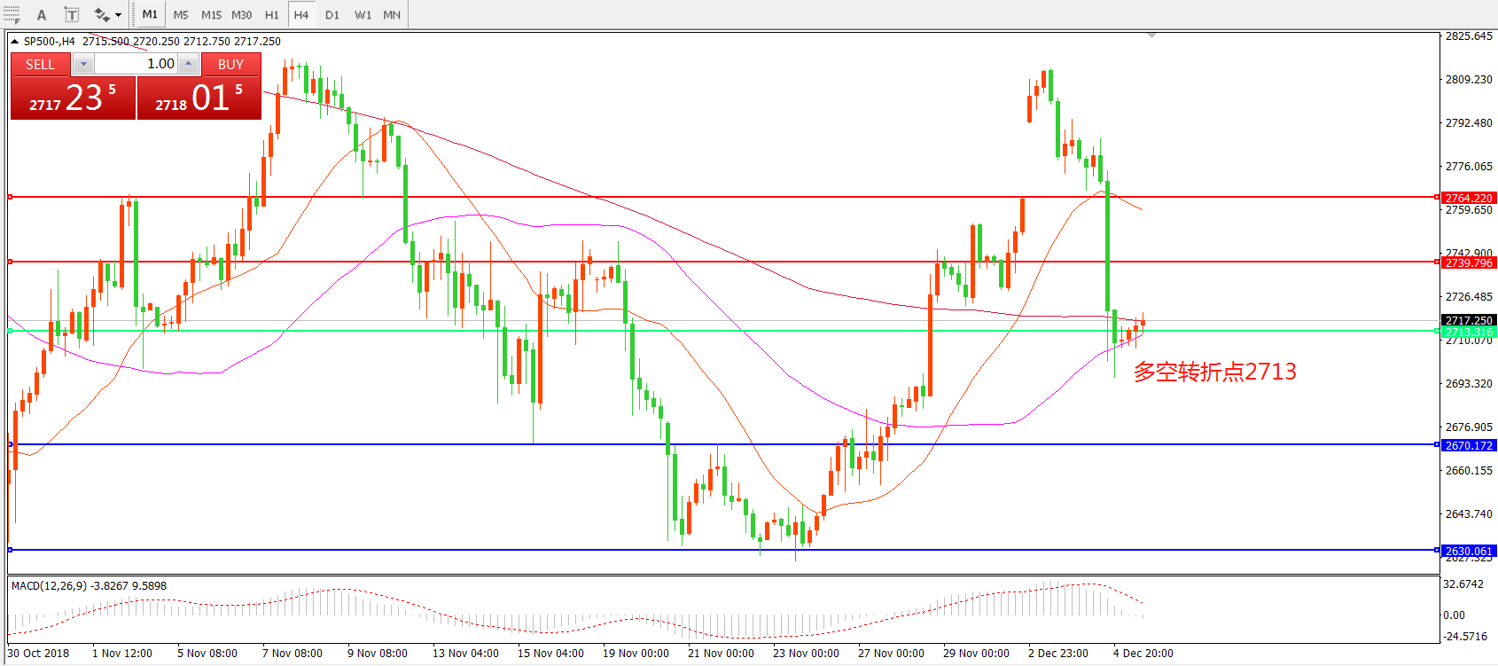 标普500SP5004小时图
