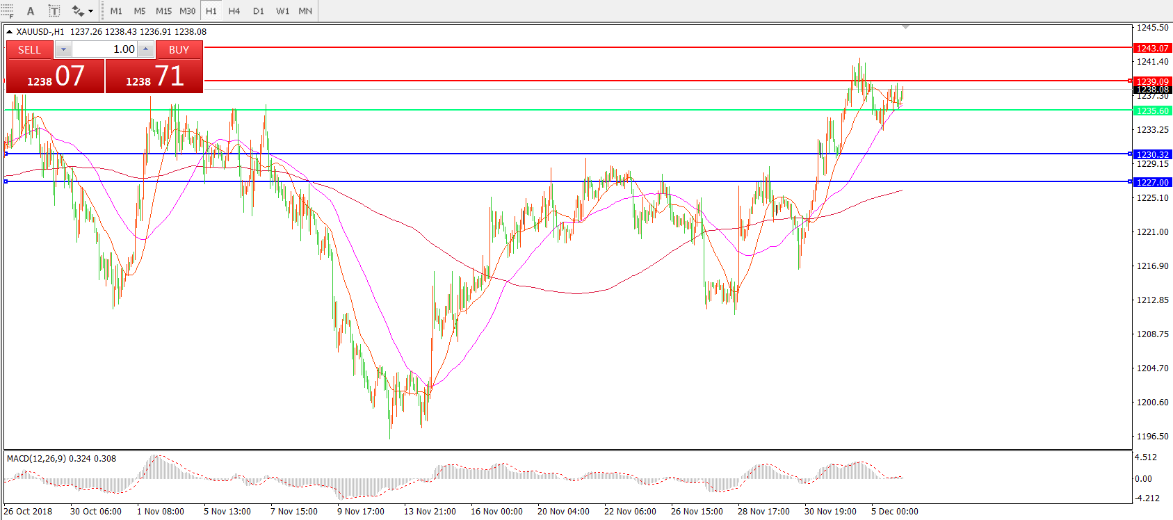 交易策略:在1235.00之上看涨,目标1239.00 1243.20