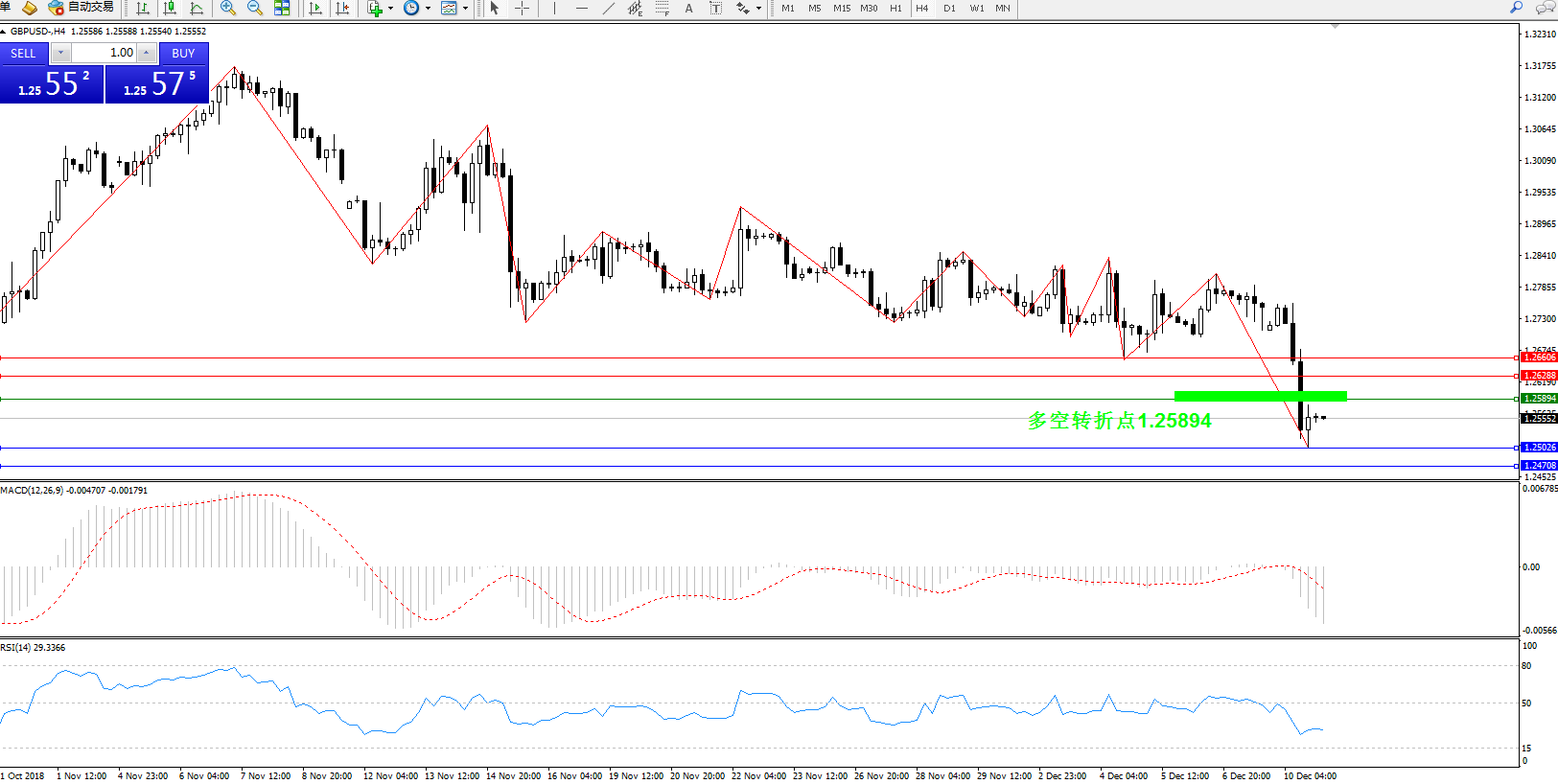 技术点评:市场空头严峻,镑美跌至20个月新低,空头压境,MACD指标继续下行,RSI指标毫无招架之力;