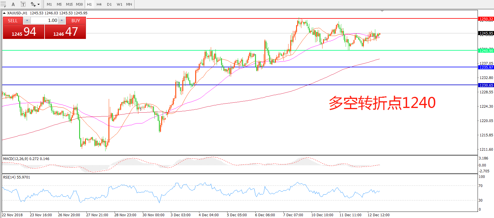 多空转折点:1240.00