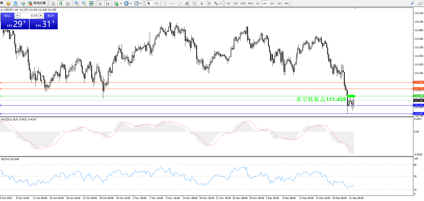 交易策略:111.459下方看跌,目标111.112110.807