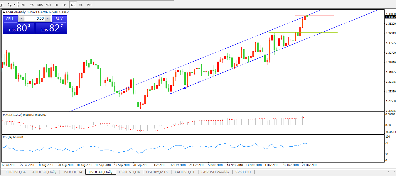 美元兑加元USDCAD日线图