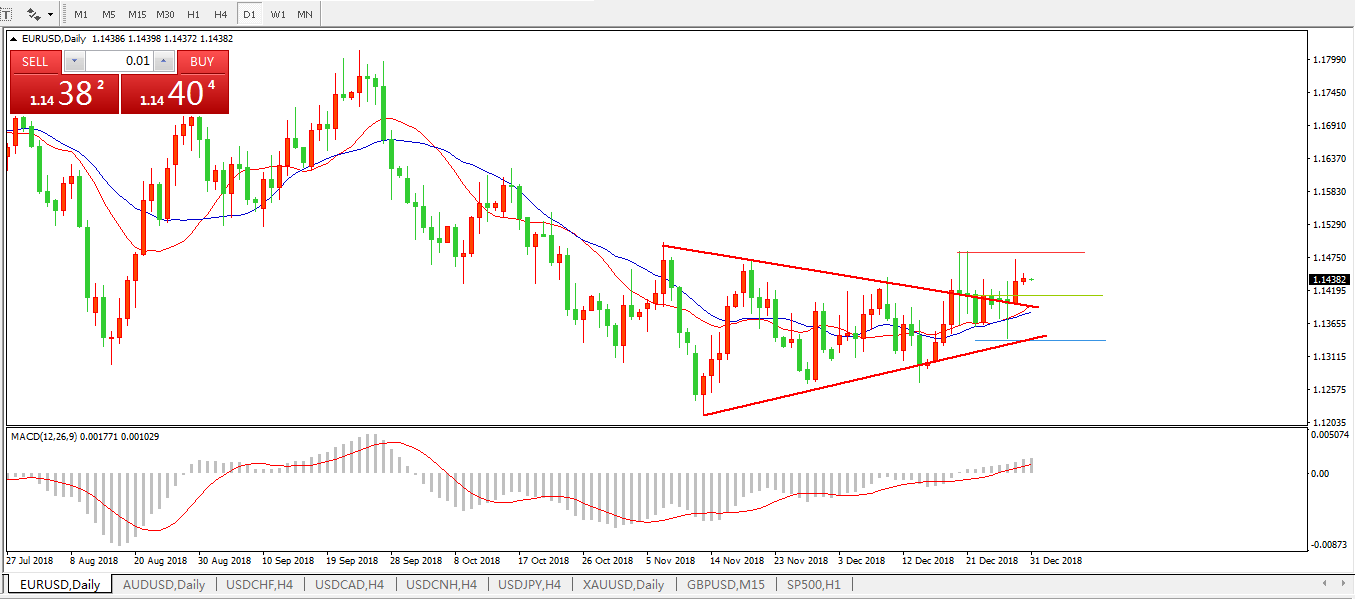 交易策略:在1.1400之上,看涨,目标价位为 1.1485 ,然后为1 .1500。