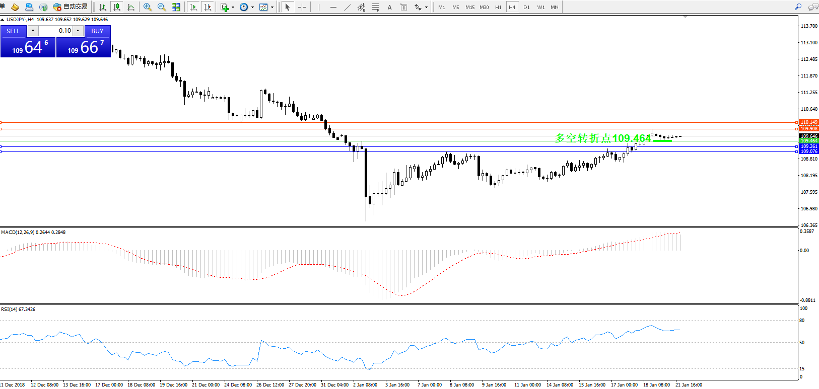 交易策略:109.464上方看涨,目标109.908、110.149