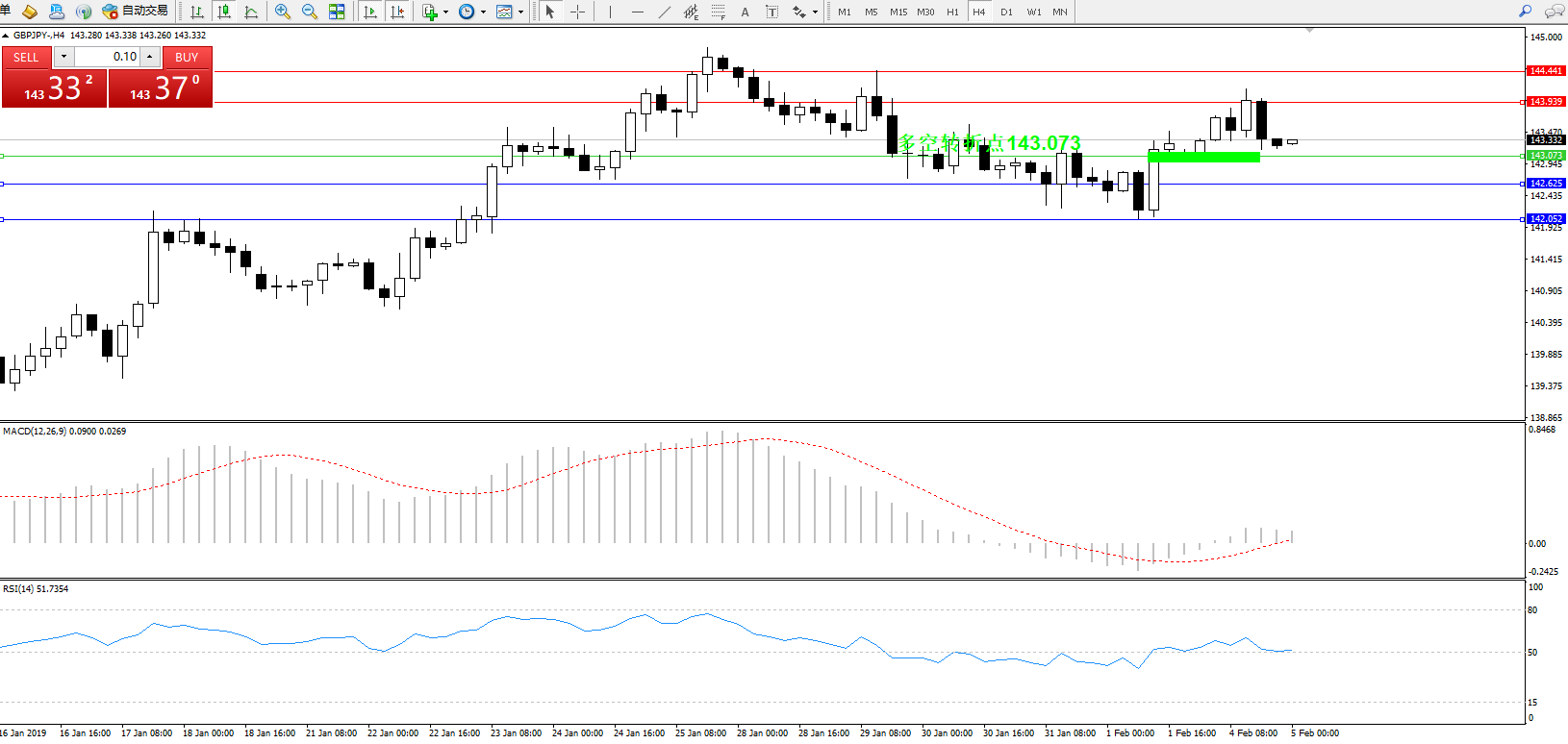 交易策略:143.073上方看涨,目标143.939144.441