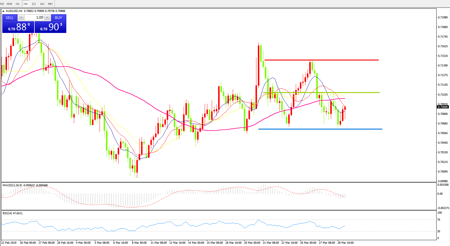 交易策略:在0.7100之下,看跌,目标价位为0.7060,然后为0.7000