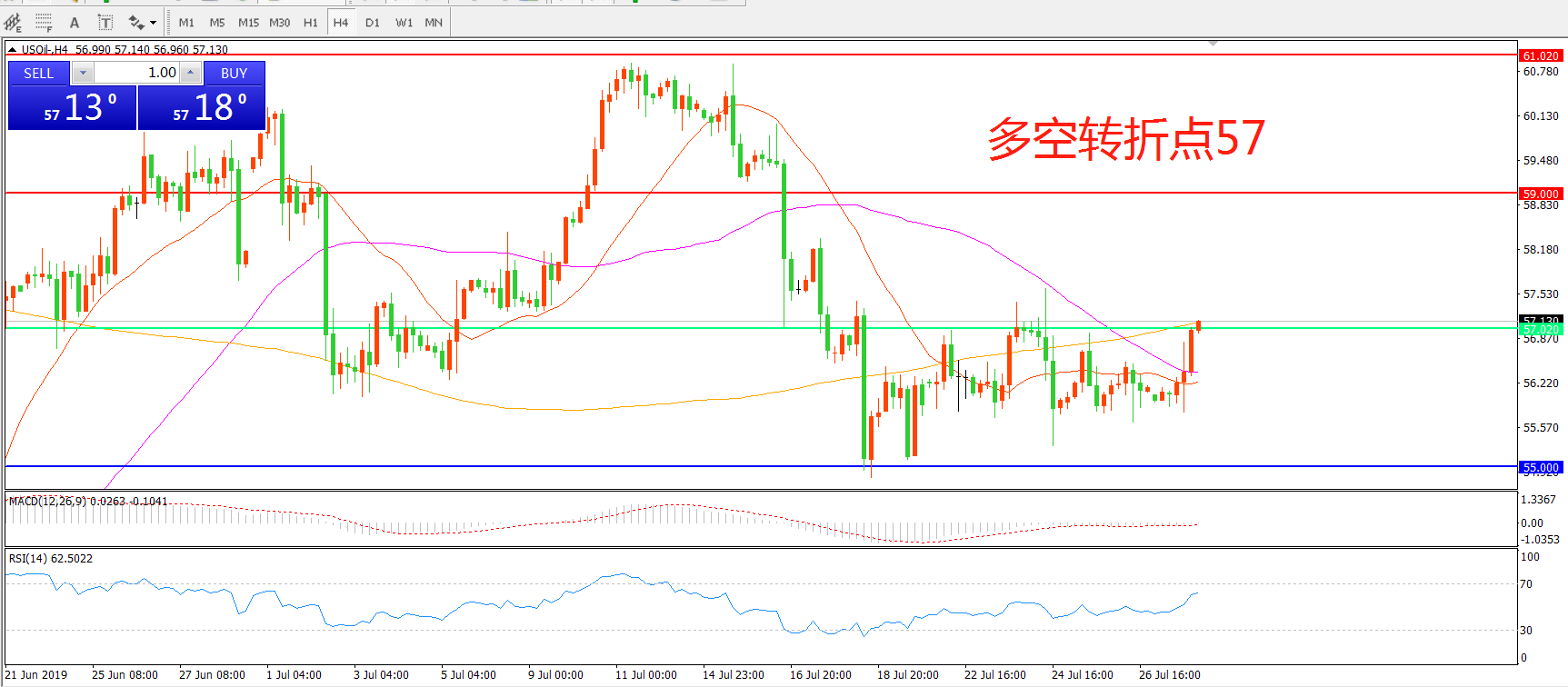 交易策略:在57.00之上看涨,目标59.00   61.00