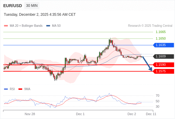 交易策略: 在 1.1635 之下,看跌,目标价位为 1.1590 ,然后为 1.1575 。
