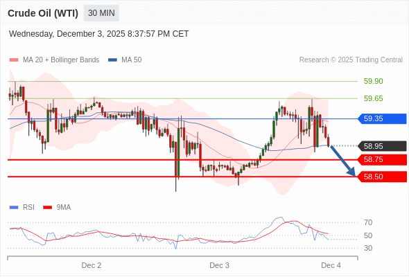 交易策略: 在 59.35 之下,看跌,目标价位为 58.75 ,然后为 58.50 。