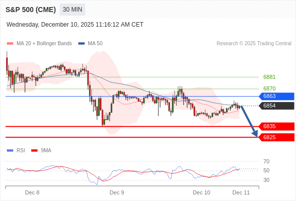 在 6863 之下,看跌,目标价位为 6835 ,然后为 6825 。