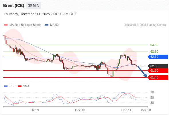 在 62.60 之下,看跌,目标价位为 61.80 ,然后为 61.40 。