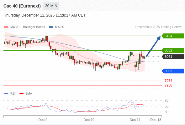 法国CAC指数期货 (Euronext) (Z5) 当日内: 超短线(当日内)支撑位在8009附近。