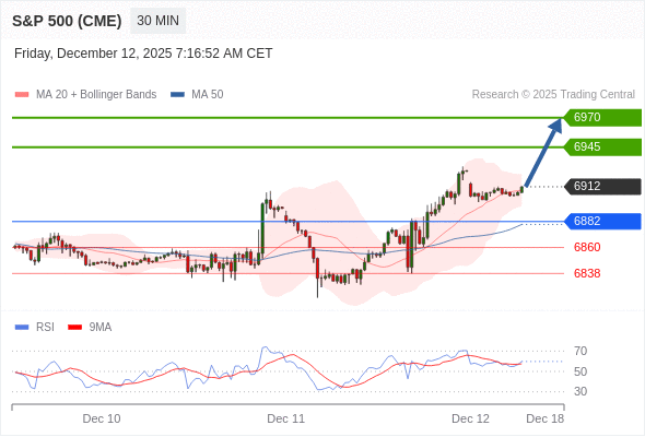 在 6882 之上,看涨,目标价位为 6945 ,然后为 6970 。