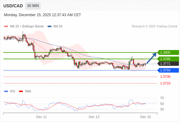 在 1.3750 之上,看涨,目标价位为 1.3785 ,然后为 1.3805 。