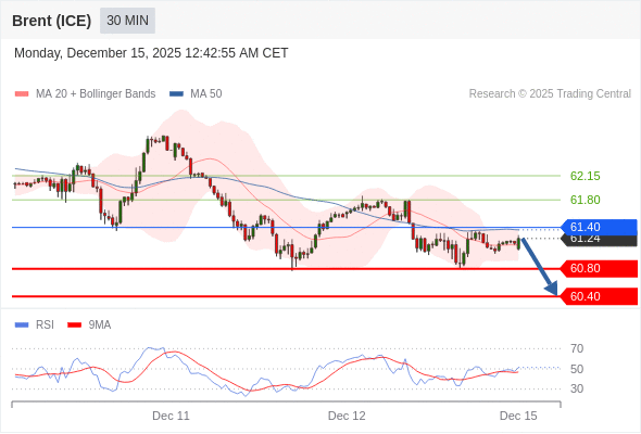 在 61.40 之下,看跌,目标价位为 60.80 ,然后为 60.40 。