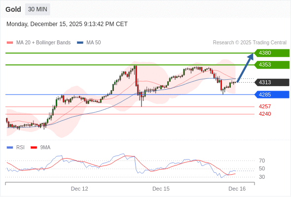 在 4285 之上,看涨,目标价位为 4353 ,然后为 4380 。