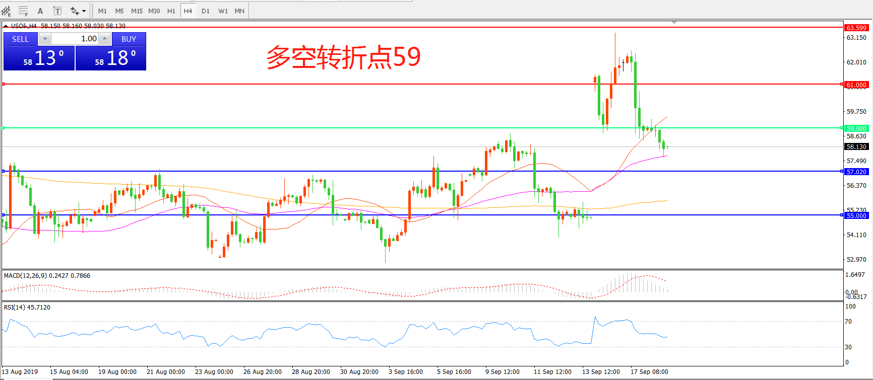 交易策略: 在59.00之下看跌,目标57.00   55.00