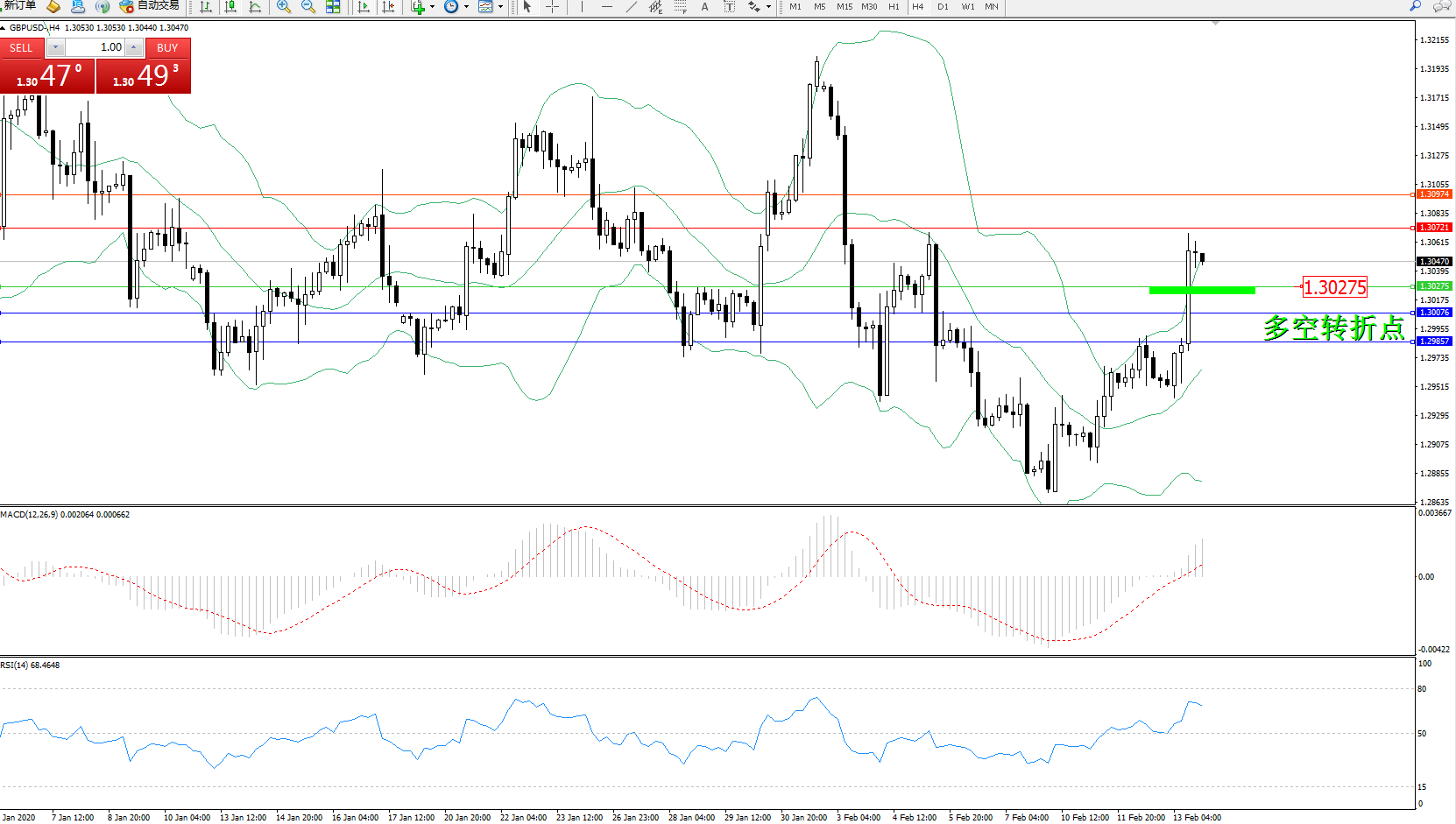 交易策略:1.30275上方看涨,目标1.30721、1.30974