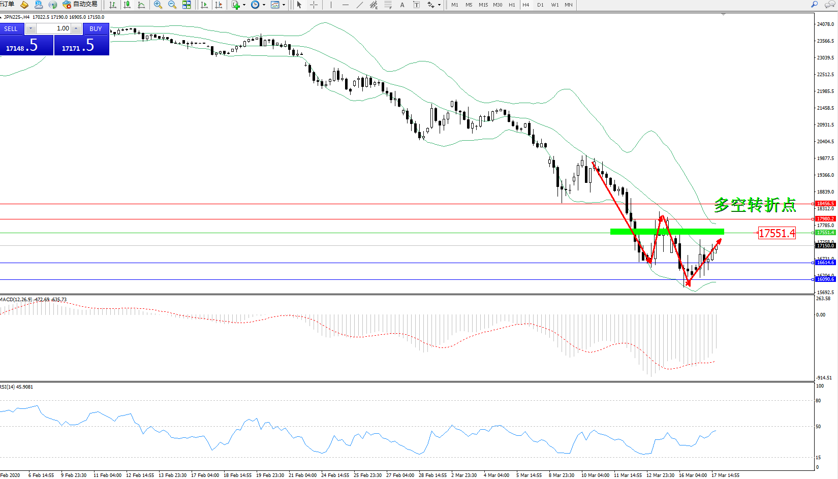 日经225指数3月17日(周二)收盘下跌63.54点,跌幅0.37%,报16938.50点。在各国政府和央行加大努力以减轻新冠病毒造成的经济后果后,避险需求减退。但全球股市的暴跌仍可能延续,卫生风险在全球范围的发展令投资者感到不安,鉴于日本央行也在采取更多资产购买等宽松行动,但力度仍有限,当美联储北京时间周一凌晨将利率降至近零水准后,美元曾震荡走弱,因为降息便打掉了持有美元的收益,美元的投资魅力也大为减少。然而,几乎没什么人愿意押注美元将长期下跌。欧美国家新冠疫情大流行的恐惧正在重创市场,美元的避险及融资需求同步升高。