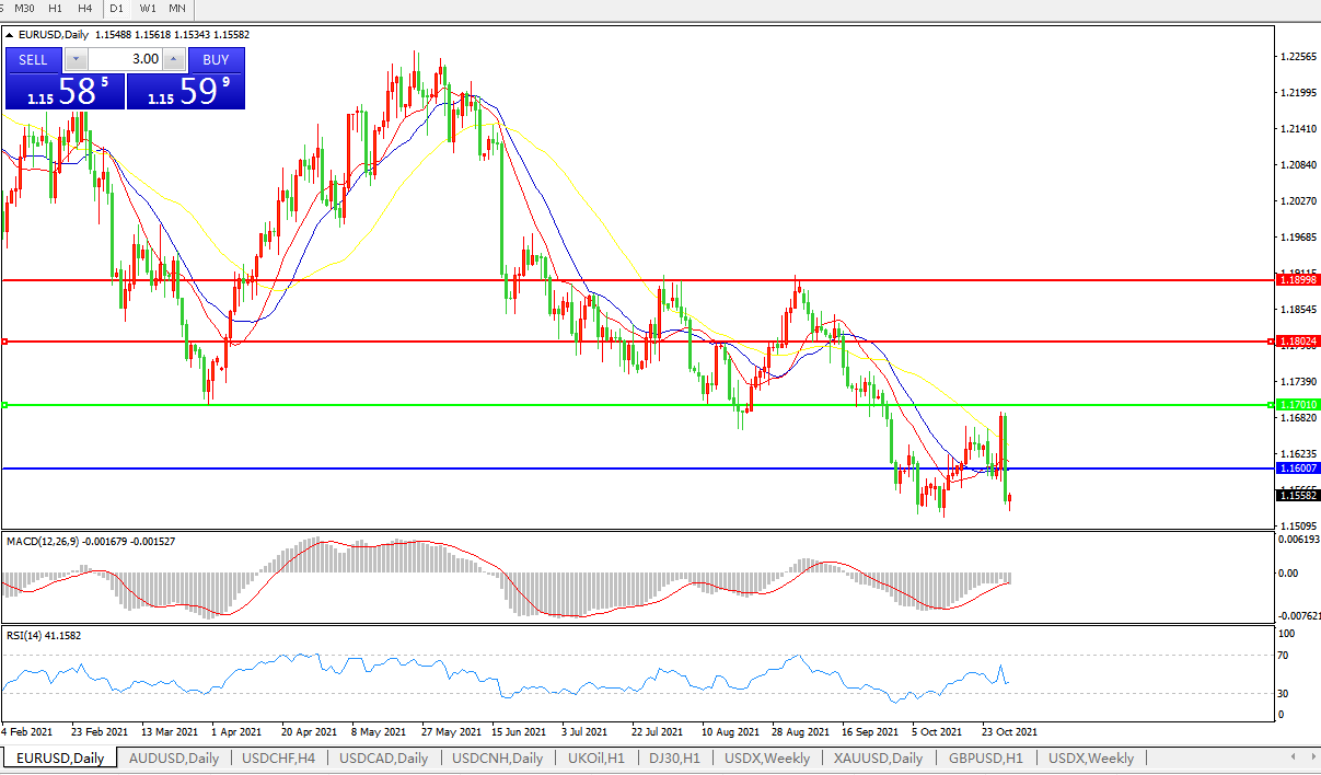 交易策略:1.1700下方看跌,目标1.1600、1.1500