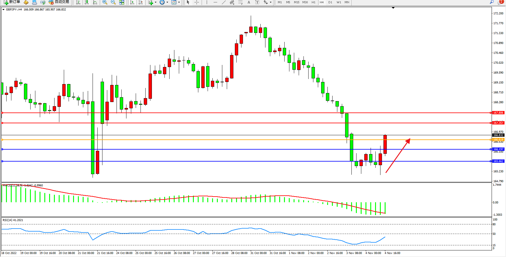 交易策略:166.619上方看涨,目标167.357、167.806