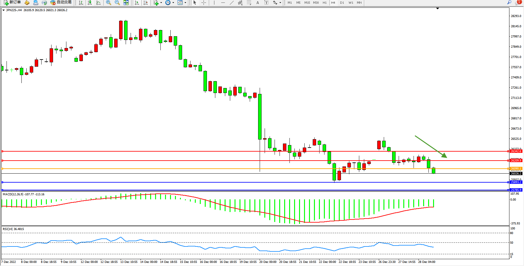 日经指数JPN225——4小时K线图显示: