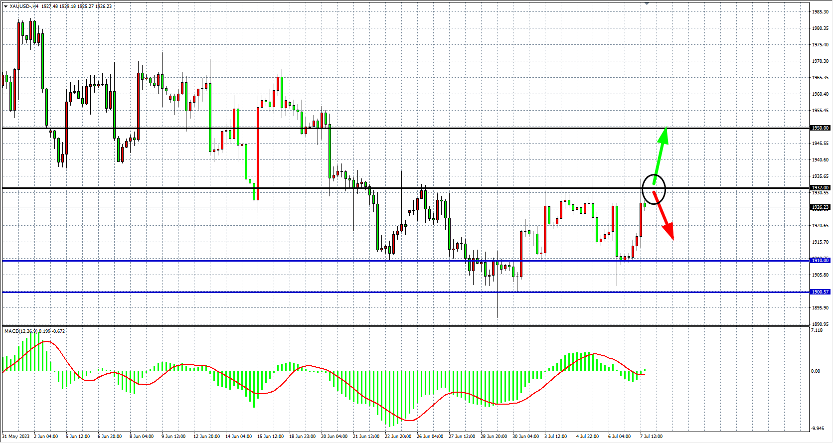 现货黄金XAUUSD 四小时图