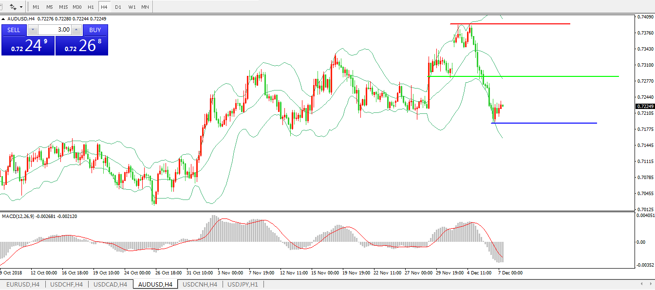 交易策略:在0.7282之下,看跌,目标价位为0.7192,然后为0.7161