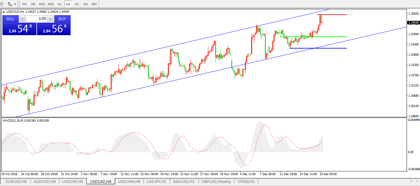 美元兑加元USDCAD4小时图