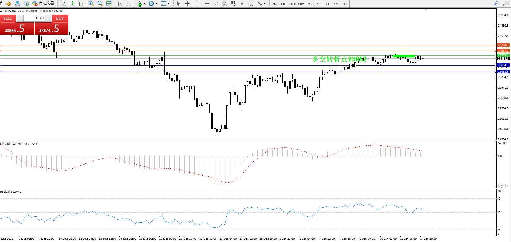 技术点评:高位平横移动中,MACD指标多头区域开始疲软,RSI指标50均衡线上方震荡;